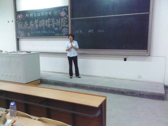 09级毕业班学生中开展,上午在高分子材料与工程及材料化学专业两个专业学生中进行,下午在金属材料工程、环境工程专业两个专业学生中进行。院党委书记张忠老师主要针对学生在就业与考研过程中遇到的问题进行了专项指导,如自荐书和简历的制作与准备、协议书的签订程序及和注意事项、考研方向与进程、档案与户口的转接等。张书记还突出强调学生应诚信地协调好自己与学校、用人单位三者之间的关系。坚增运教授向大家详细介绍了学校报考研究生相关工作的政策,强调大家要认真地对比本校与他校考研政策对自己的影响,并从专业方向的选择方面给予了指导。陈卫星教授为大家详细介绍了我校基本情况、办学思路、学科建设、本科与研究生教学的现状和特色等。