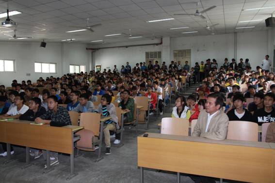报告会在1:30准时召开,教C105教室内座无虚席,过道内摩肩接踵。刘峰教授激情满怀地通过讲述他学生时代如何由懵懂无知到奋发图强,如何在科研历程中对科学真理执着追求,如何在创业道路上对理想信念坚持不懈。刘峰教授娓娓道来,令闻者为之动容,使新入学的大一新生找到了奋斗的目标,全场多次爆发出雷鸣般的掌声。师生问答环节。针对同学们的各种疑问,刘峰教授做出了耐心而详细的解答,同学们获益匪浅。