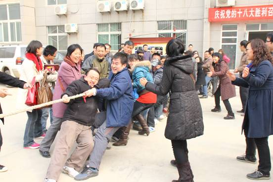 教工积极参加了由校工会组织的拔河比赛。