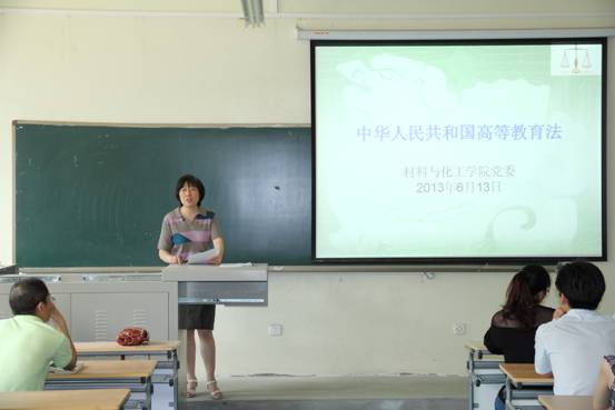 党委书记张忠带领大家一起学习《中华人民共和国高等教育法》,回顾了《高等教育法》诞生的历史背景与现实的社会意义,介绍了与教育相关的学位条例、义务教育法、教育法、职业教育法等法律法规,重点学习了《高等教育法》的五项条件和五项原则。