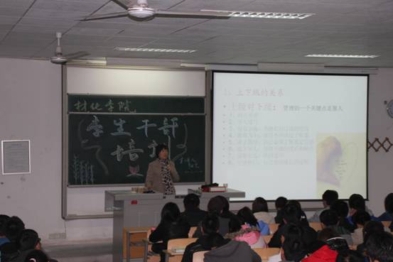 张忠书记向大家列举了学生干部需要处理好的各类关系,如与上下级的关系、与老师的关系、与同学的关系及工作与学习的关系等等,并分析了处理好这些关系的重要性。张书记提出,学生干部首先要以学习为主,其次再做好自己学生干部的工作,锻炼自己各方面的能力;还要学会尊重上级,认真执行命令,也可对上级的错误敢于指出。另外要处理好与别人的关系,突显自我,展现自我。