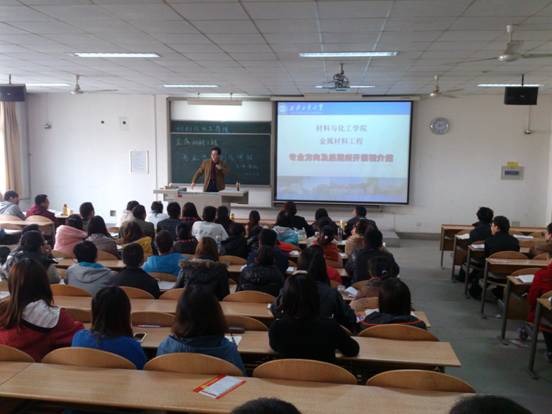在11级金属材料工程专业学生进行方向选择之际,邀请金属材料工程专业研室副主任李炳老师为金属材料工程专业同学在教2-206做专业发展方向讲座。
