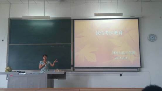 2014级辅导员张瑞红就《学生手册》中关于西安工业大学考场规则与考试纪律管理办法做了详细讲解,同时通过PPT讲述信考试教育强调不仅要诚信考试,而且也要诚信做人。就最近将要组织的英语四级考试和期末考试做了具体严格的要求,同时鼓励全体同学保持高中学习劲头的作风,努力学习,顺利通过大学英语四级考试,并在即将到来的期末考试中取得优异成绩。