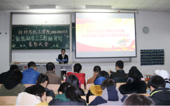 就2018年在学风建设、学生科技竞赛、创新创业、文体活动中取得的成绩给予充分肯定和衷心感谢。路书记指出,院实施“敦德励学三三行动计划”正是响应新时代全国高等学校本科教育工作会议精神,推进本科教育“四个回归”中的第一个回归,引导同学们求真学问,激发大家的学习动力和专业志趣,改变轻轻松松就能毕业的情况,真正把内涵建设、质量提升体现在每一个学生的学习成果上。路书记对学生提出三点要求:一要坚定理想信念,主动弘扬和传播社会主义核心价值观,提升自己的思想内涵;二要合理“增负”,通过不断汲取专业知识,提升自己的专业内涵;三要勤于学习历史文化知识,学广学深,提升自己的文化内涵。