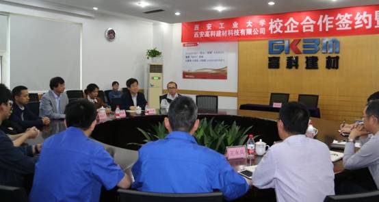 签约仪式上,高科建材张穆强首先代表公司对我校师生的到来表示热烈欢迎,并介绍了公司基本情况和技术研发情况,对我校培养的学生在公司工作情况给予高度评价和认可。我校路金龙介绍了学校基本情况和人才培养情况,彭渝丽介绍了学校科研基本情况及在校企合作方面取得的成绩,郭永春重点就与公司相关的金属材料工程、高分子材料与工程和环境工程等专业的研究情况进行了介绍。