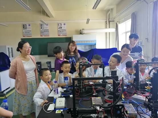3D打印实验室。马爱洁老师耐心的向孩子们讲解了3D打印的发展、原理及应用实践。实验室老师现场启动打印机,演示3D打印的操作及运行,并分发事先打印好的模型让孩子们零距离接触和感受3D打印,体验现代科技的神奇奥秘和魅力。