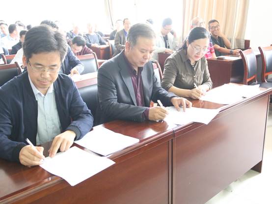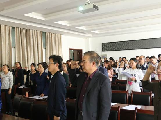随后,全体教师面对鲜红国旗,庄严宣誓。并签订《西安工业大学教师承诺书》。