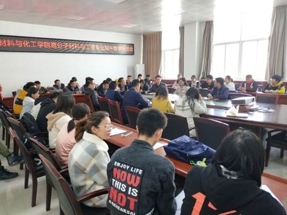 在工3—410召开高分子材料与工程专业期中教学座谈会。会议由高分子教研室副主任侯永刚老师主持,强涛、马爱洁、杨晶晶等十二位教研室老师参加会议。