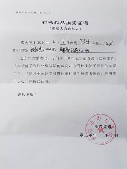 师生党员积极参与捐赠献爱心,助力疫情防控。马爱洁利用个人实验室资源制备消毒试剂,收集口罩、手套、防毒面具等,捐助给有需求的小企业以及周围需要帮助的人。身在海外教师党员许军锋心系祖国,向周围同事同学宣传防护措施,减少华人恐慌,传递正能量。校民盟成员要玉宏向武汉慈善总会捐款1000元。学生党员贝胜男积极动员家人向泰安医院捐赠护目镜、医用帽子、医用手套、乳胶手套、隔离面罩、医用酒精、消毒液等价值7万余元的抗疫物资,贾哲、郭心怡、张欣怡、李姝姝、杨静、等同志通过武汉慈善总会等网络平台捐款支援武汉,张恒华及其家人累计向附近的邻居村民免费赠送口罩50余个。138开奖网