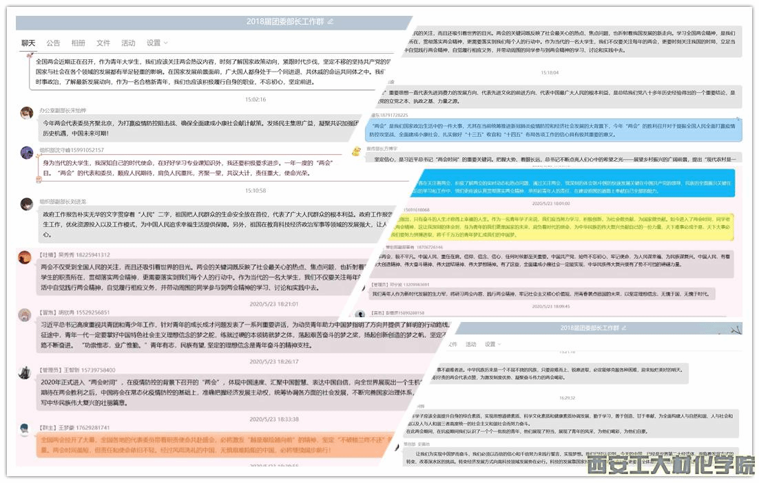 特殊时期召开的全国两会,承载着特殊的期待,吸引着特殊的关注。全院师生密切关注着两会盛况,通过手机、电脑、电视等多种渠道了解两会的进程与内容,并且就疫情防控、脱贫攻坚、就业等热点问题进行了线上交流和讨论,掀起了学习“两会”精神的热潮。回顾过去,立足当下,展望未来。广大材化学子纷纷表示,在认真观看“两会”直播,听完政府工作报告后,对于社会热点问题有了更深的了解,虽然目前全球疫情和经贸形势存在很大不确定性,中国发展也因此面临一些困难和问题,但中华民族向来不畏艰难险阻,当代中国人民有战胜任何挑战的坚定意志和能力。此外,同学们还拍摄了内容丰富,形式多样的“两会”寄语视频,在视频中大家表达出自己对两会的期待与心声,也表示感受到自己身上的责任与担当,将不断鞭策自己,深入学习2020“两会”精神,做社会主义合格建设者和可靠接班人。
