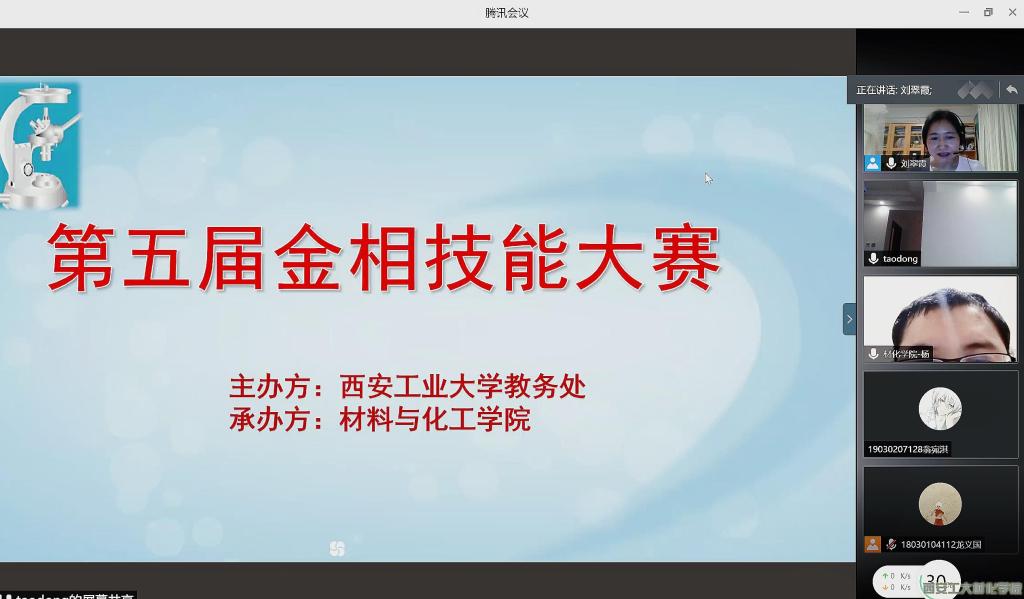 为及时对学生进行金相大赛相关技能的培训,保证“恒宇杯”西安工业大学第五届金相技能大赛的顺利举行,第五届西安工业大学金相技能大赛线上培训会于2020年9月13日晚7点20召开,全体参赛人员参加此次会议。