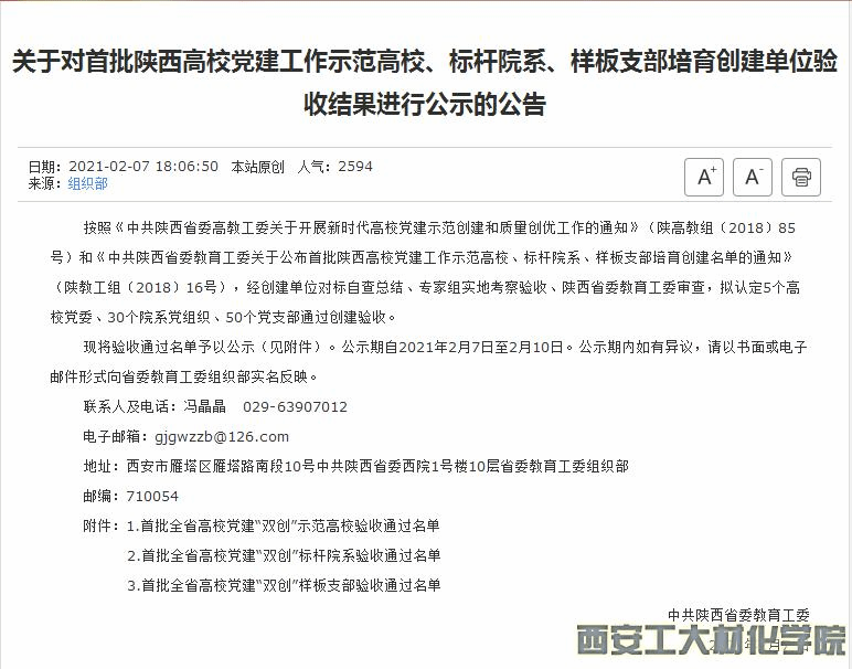近日,陕西省委教育工委公布了首批陕西高校党建工作示范高校、标杆院系、样板支部培育创建单位验收通过名单。138开奖网