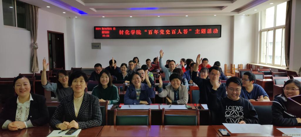 本次知识竞答活动采取个人竞答和团体现场抽题作答的方式,形式活泼,内容全面,不仅让材化教职工重温了中国共产党建党以来的光辉历程,进一步加深对党的历史和党的理论、路线、方针、政策的认识,也充分展示了材化教职工的新风貌、新风采。