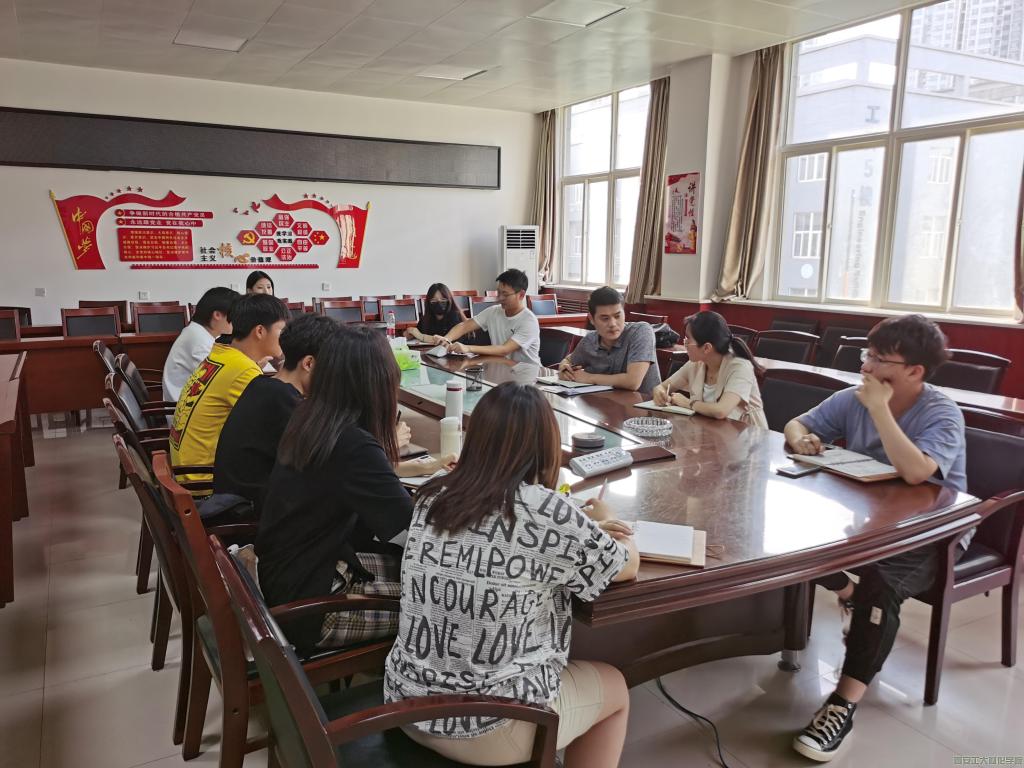 的宣传栏,要利用好,维护好,即时更新各项内容。接下来,段老师对本学期后续的工作做了部署,他指出,随着七一建党节的临近,团学组织要利用好各项学习党史、宣传党史的活动,为庆祝建党一百周年营造出一个人人学党史,人人知党史的积极氛围。最后,两位老师与团学干部一起对合唱比赛的准备工作进行了讨论,给团学干部提供了新的编排思路和方法。至此,本次会议圆满结束。