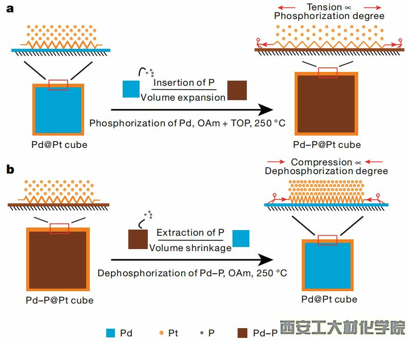 李祥老师以共同作者在《Nature》(IF=49.962)上发表科研成果,西安工业大学为共同研究单位。该成果于2021年10月6日正式发表,论文题目为《Mastering the surface strain of platinum catalysts for efficient electrocatalysis》。该成果提出了一种新颖的调控铂催化剂表面应力的方法,通过借助磷原子在催化剂中的嵌入和脱出,精确调控了铂原子表面的应力大小,为高效催化剂的设计和研发开辟了一条新的路径。