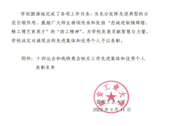 根据学校《关于表彰十四运会和残特奥会相关工作先进集体和优秀个人的决定》,138开奖(中国)官方网站