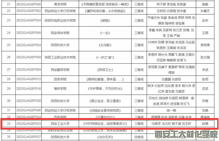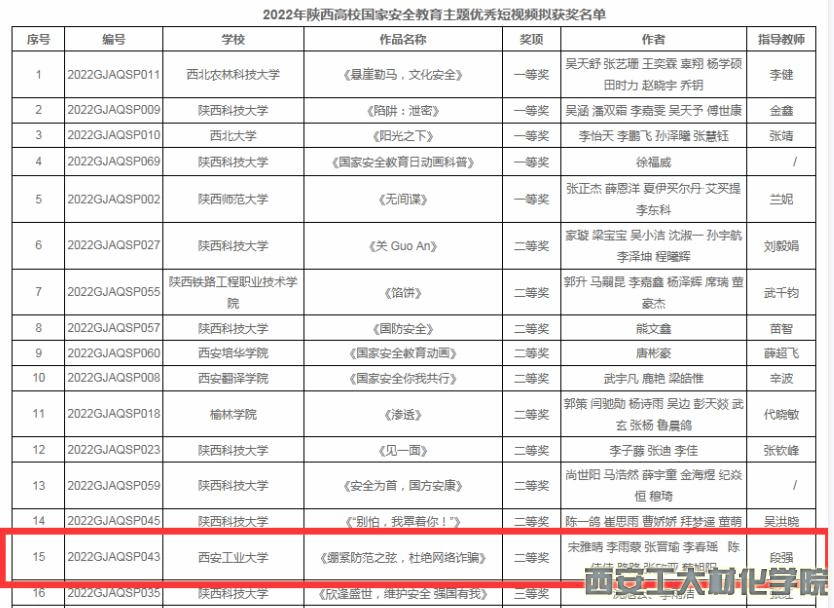 围绕“守护青春,感悟新时代国家安全成就”主题,精心制作微电影、宣传教育短视频参加陕西高校国家安全教育主题优秀短视频征集活动,全省共135个作品入围,经过一个月的评比,138开奖(中国)官方网站