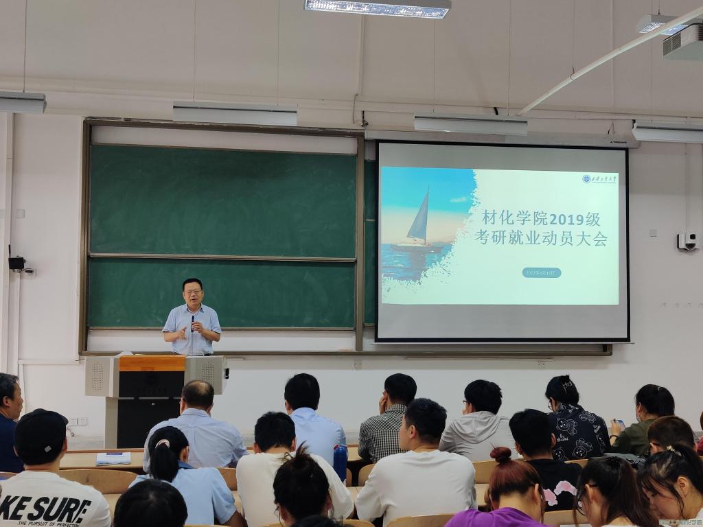 副书记陈卫星结合当前就业形势和个人前景发展,从“为什么要考研”“怎么准备考研”和“如何坚持考研”三个方面向大家介绍了考研准备和报考院校选择方法,希望同学们坚定考研目标,奋勇拼搏、砥砺前行,努力成为材料领域的高层次人才,为国家建设和社会发展做出更大贡献。