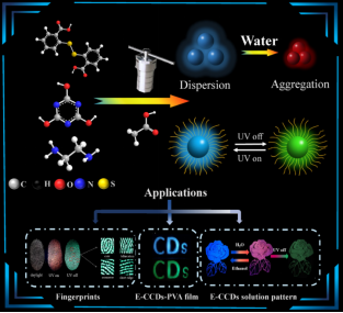 文章采用一种环保、低成本的溶剂热法合成了具有AIE和RTP特征的新型CDs(E-CCDs)。此项研究将会为多聚集诱导荧光及室温磷光研究打开了一扇窗户,并为多重信息加密领域的应用提供新的思路。