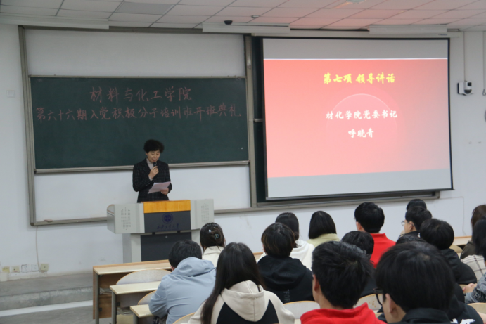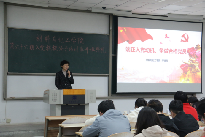 党委书记呼晓青对全体入党积极分子进行思想动员讲话,并对培训班学员提了三点要求:一是提高认识,明确培训目的。通过培训,了解党的基本理论、基本路线、基本纲领、基本经验和基本知识的系统教育,确立为共产主义事业而奋斗的理想信念,为早日加入党组织扫清障碍、打好基础、创造条件。二是端正态度,注重学习方法。学习过程中要注重“三个结合”,集中学习与个人自学相结合,理论与实际相结合,学习与思考相结合。三是坚定信念,加强党性修养。树立高尚的道德情操,不断充实自己、提高自己、完善自己,争取早日在思想上、组织上加入到党的行列中来。