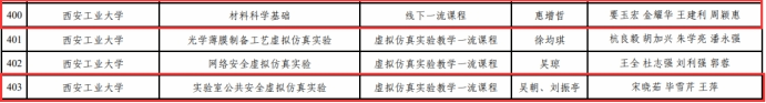 4门课程被认定为陕西省一流本科课程,其中线下一流课程1门、线上一流课程2门、虚拟仿真实验教学一流课程1门。目前,138开奖网