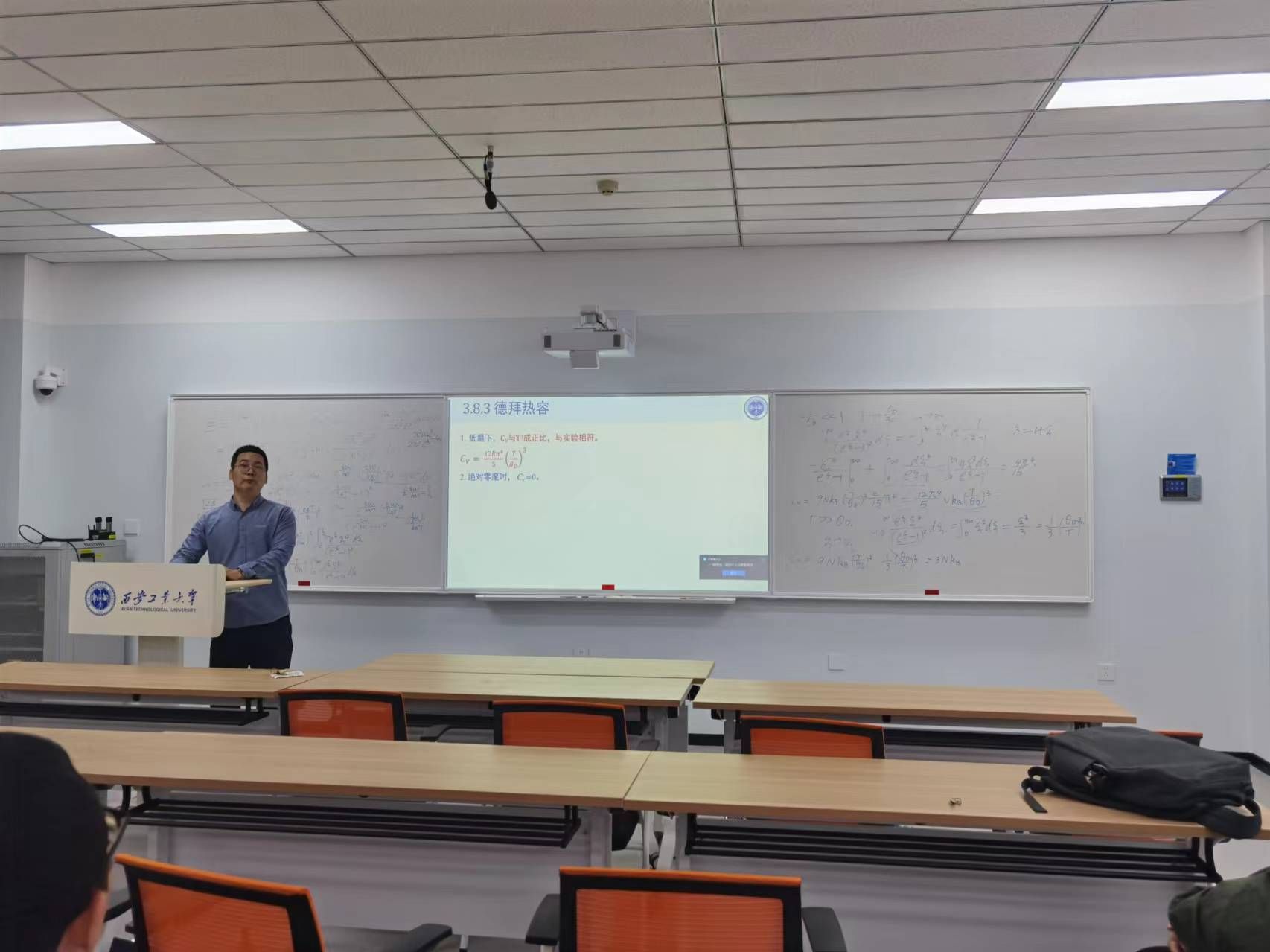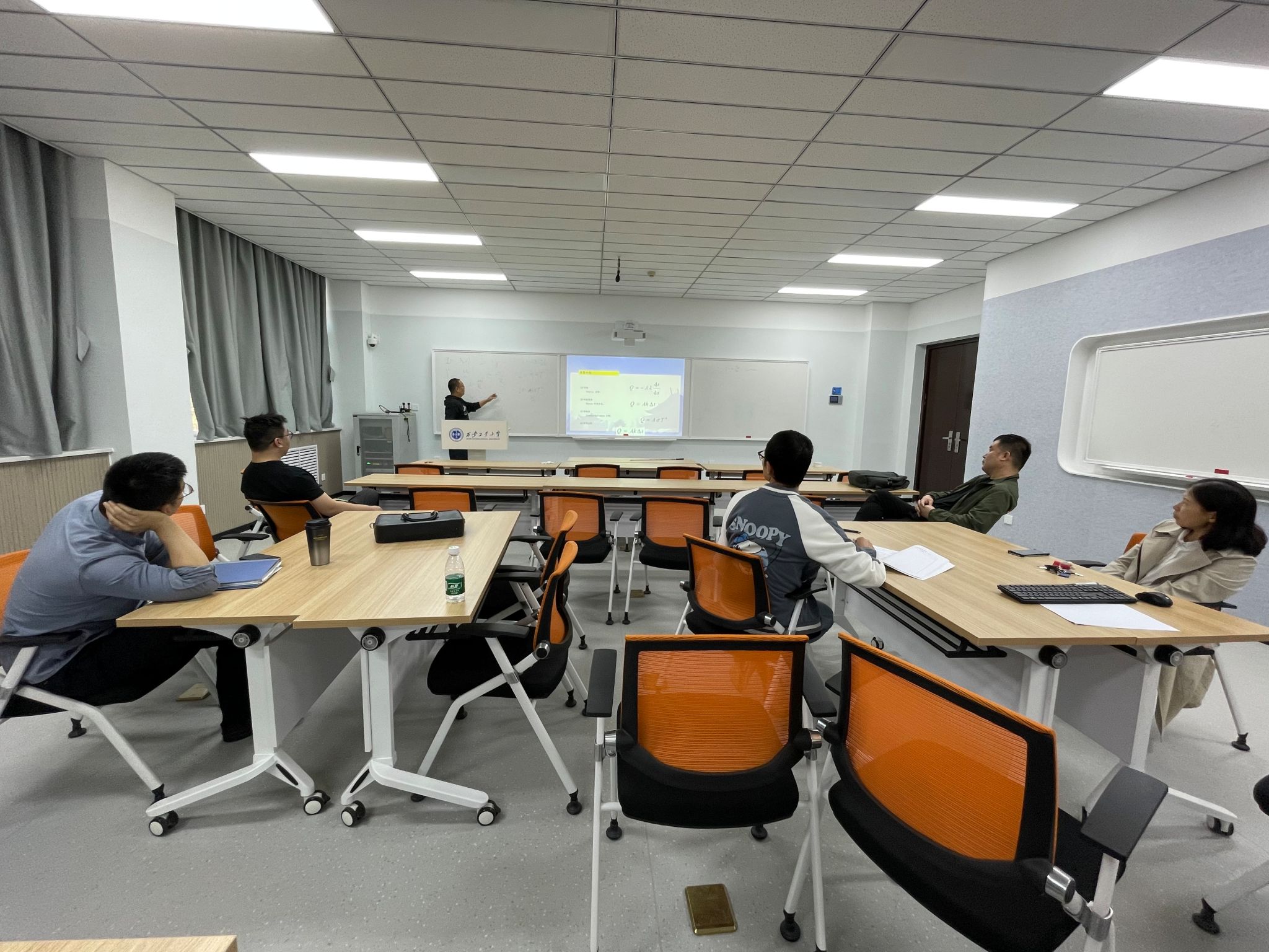 活动开始,郭菲菲老师强调了课堂教学质量是本科人才培养的基础保障,提升课堂教学质量是教研室长期向好发展的生命线,并介绍了本次活动的具体安排。活动中,魏永星老师讲授了《固体物理》课程中的德拜热容、方频阳老师讲授了《物理化学》课程中的部分互溶系统的平衡相图、金碧瑞讲授了《材料研究方法》课程中的光谱分析、靳长清老师讲授了《材料工程传输原理》课程中的传热问题,四位老师采用多媒体+板书的形式呈现了精彩纷呈的课堂。讲授结束后,李晓娟老师对课堂效果进行细致点评,指出存在的问题与改进方向。老师们也针对如何更好地提升课堂教学质量进行了深入探讨。