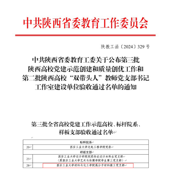 近日,省委教育工委公布了第三批陕西高校党建示范创建和质量创优工作验收结果,138开奖(中国)官方网站