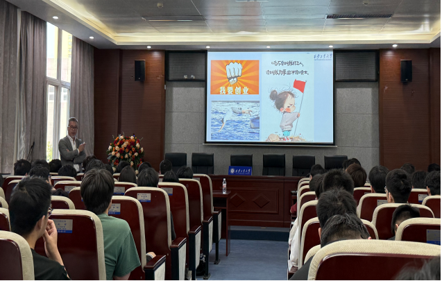 尹志刚教授围绕有机薄膜电子学在能源与信息交叉领域的前沿研究展开学术报告,并结合自身科研实践与求学经历,激励在场学子要将个人职业理想与国家社会发展需求相结合,在服务国家战略需求的征程中实现人生价值;麦德安医疗设备有限公司总经理李军以幽默风趣的语言,生动讲述了自己的创业动机、充满挑战的创业经历与深刻的创业感悟,并现场寄语:“人生很长,没有什么是你可以永远依靠的,与其碌碌无为不如轰轰烈烈!”