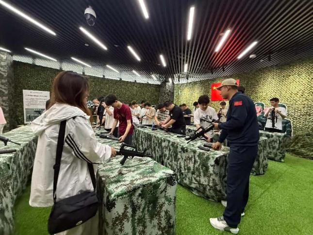 学生在实践中兴奋地分享专业发现。随后的情景模拟打枪练习,逼真的战场音效与虚拟对抗场景,让同学们身临其境地体会到军人保家卫国的责任担当。
