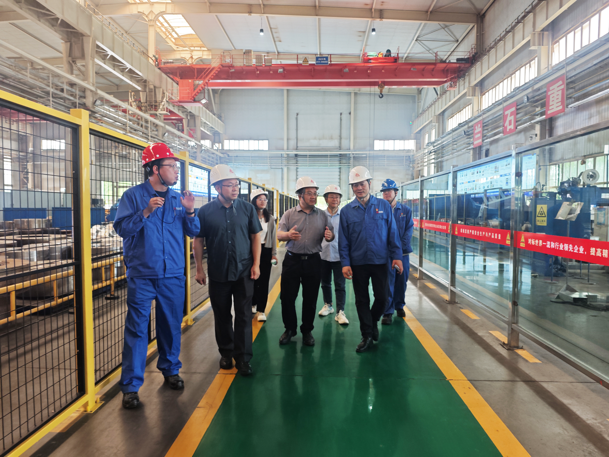 党支部书记宋道春的陪同讲解下,调研团先后参观了企业展厅、石油钻采机械、炼油化工设备、换热器、大型快速锻压及氢能新装备等生产线。通过实地考察,深入了解了兰石集团的发展历程与业务布局,对高端能源装备生产的数智化、系列化、信息化发展成果形成直观了解。参观结束后,双方在会议室召开座谈交流会,会议由刘景龙主持。