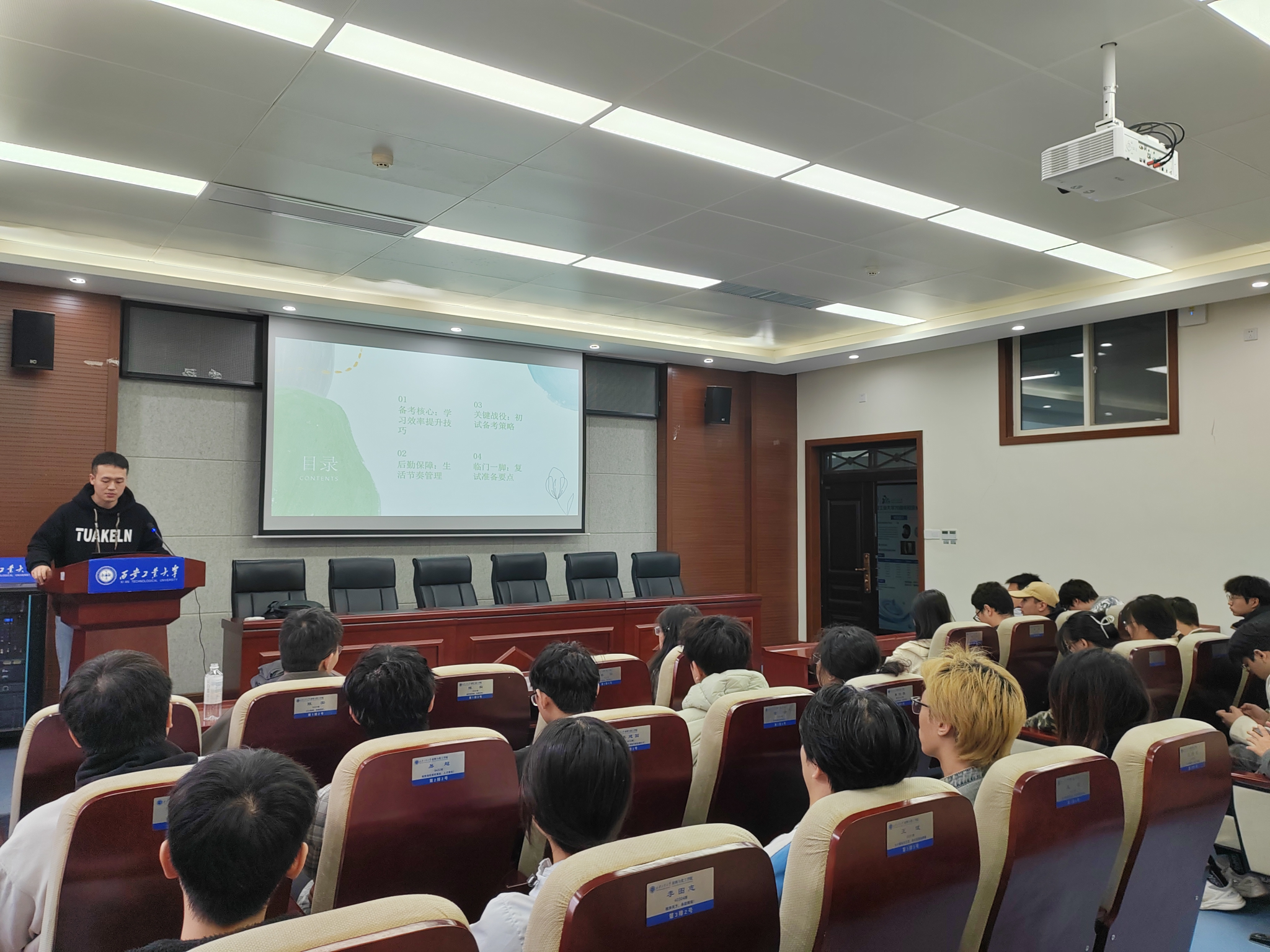于工4-204精心组织考研经验交流会。本次活动由毕业班辅导员张瑞红老师主持,40余名计划报考本校研究生的2026届学生参与,特别邀请3名本校研一优秀学长学姐担任分享嘉宾。
