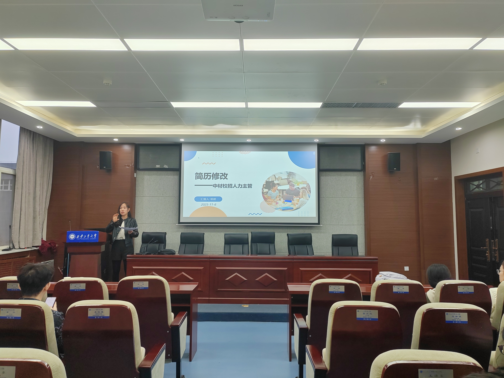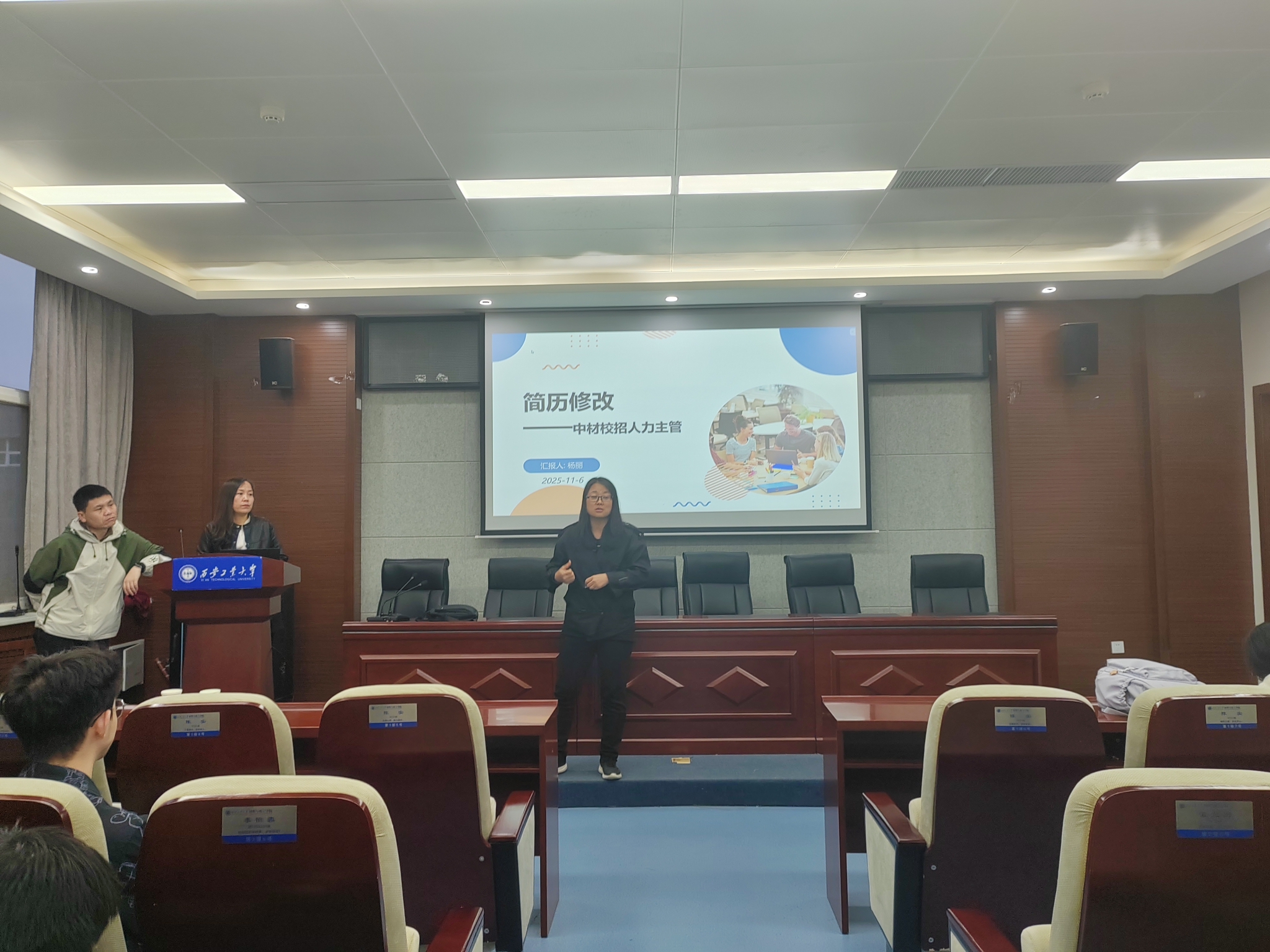 特邀中材科技风电叶片股份有限公司人力主管杨丽女士开展了一场简历修改与面试指导专题讲座。本次活动旨在通过行业资深人事的专业视角,为同学们的求职之路精准赋能。