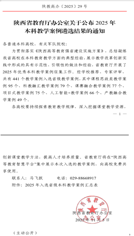 近日,陕西省教育厅公布了2025年省级本科教学案例遴选结果,138开奖网
