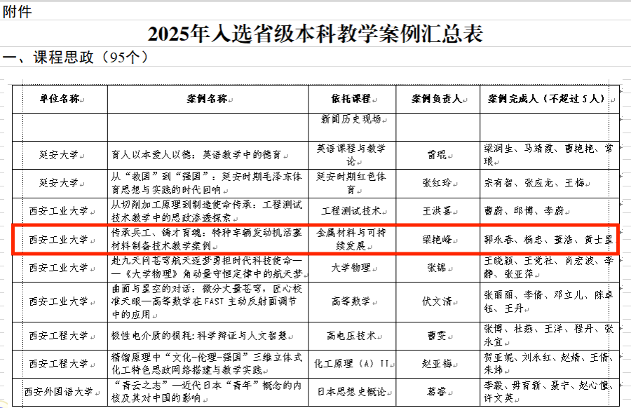 梁艳峰老师牵头完成的《传承兵工、铸才育魂:特种车辆发动机活塞材料制备技术教学案例》,成功入选“课程思政类”教学案例,彰显138开奖网