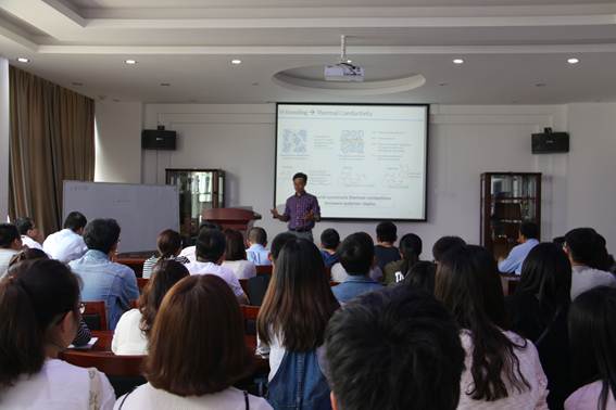 在报告中,朱家华博士结合自己近年来的研究成果,向大家介绍了关于氢键自组装聚合物新材料的最新研究进展。报告内容丰富多彩,讲解生动、深入浅出,不仅开阔了大家的视野,更激发了大家的科研热情。学术报告之后,朱家华博士与参加在场的教师和研究生进行了互动交流,并与参会师生分享了科研工作中的心得体会。
