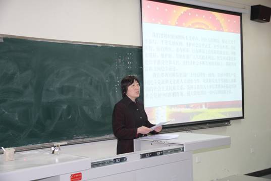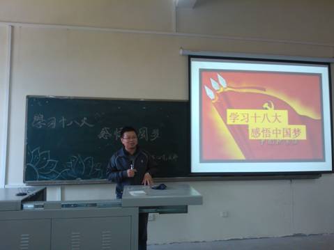 党委书记张忠为全院教现做题为《中国梦,人民梦》学习辅导报告,全面解读了中国梦的丰富内涵、实现途径和保障机制等内容,号召全院教师加强对十八大会议的有关政策、决议进行研读,深刻领悟会议精神,感悟中国梦的丰富内涵,以自己的实际行动为实现中国梦而努力;要求各支把“学习十八大,感悟中国梦”作为组织生活的主要课题,结合支部实际开展丰富多彩的特色活动。