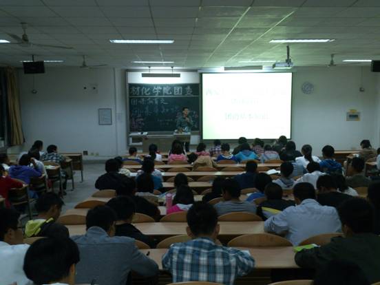团委书记王国栋老师主讲,团委副书记于海博、团委各部门部长以及2013级学生参加。