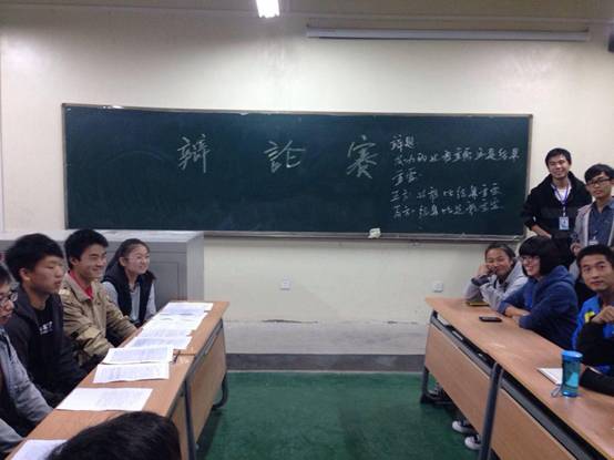 辩论赛决赛在教2-208教室举行,为期一个月的新生辩论赛落下了帷幕。