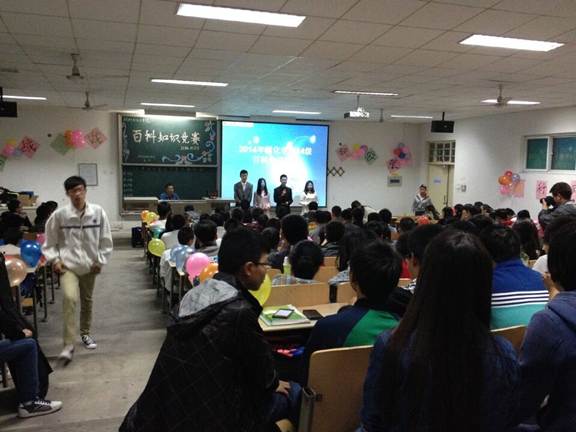 科协于教2-306举办了一年一度的百科知识竞赛,2014级各班代表参加了此次比赛,138开奖网