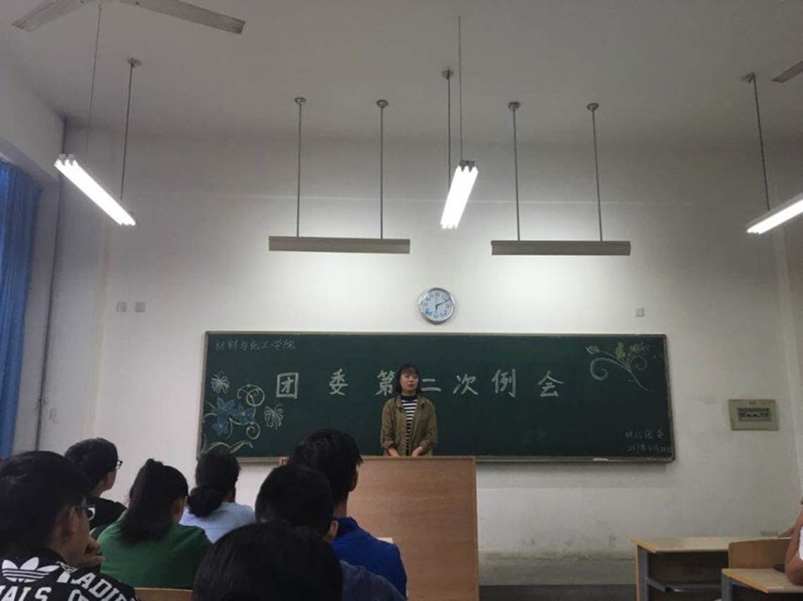 团委副书记李先港上台对近期将要进行的“一学一做”活动、环保主题座谈会、团支部督察小组等事宜进行了简单的介绍。其次,团委秘书长陈妍妍就“一学一做”活动——团员知识竞赛,与大家交流了意见,同时分配下任务,望各部门积极筹备,将本学期最重要的一次活动办得有序、创新。接着团委副书记王鑫针对团委运动会期间的工作做了总结,对干事们提出要求:要加强时间观念、对份内工作认真负责,同时也鼓励大家积极参与各项活动,锻炼自己。最后,部分团委干事上台进行了即兴演讲,分享了他们的趣闻与心得。至此,本次会议圆满结束。