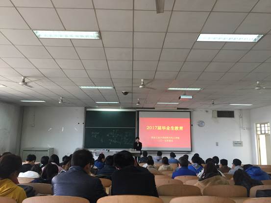 毕业教育大会上,毕业班辅导员首先从思想上引领广大毕业生,组织毕业生党员认真完成“两学一做”学习教育,教育引导广大毕业生党员做合格党员,发挥核心骨干作用,积极投身建设中国特色社会主义事业的伟大实践。其次,陈老师强调,毕业上要爱校荣校。引导毕业生增强爱校荣校的荣誉感和使命感,营造温暖和谐的毕业氛围。随后,陈老师要求毕业生要感恩师友,激发学生对学校、师长的感恩情怀。最后,陈老师倡导毕业生要文明离校。