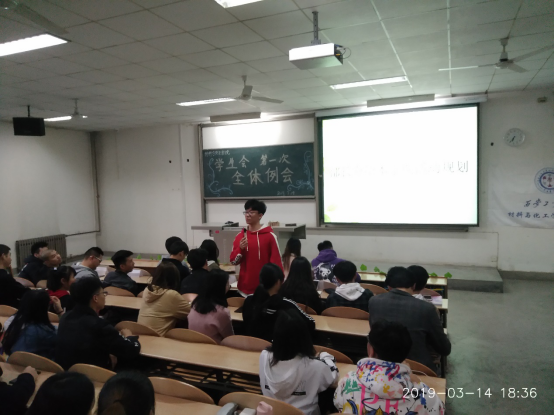 学生会于2019年3月14日18时在教一-104召开学生会专题学习会,以求更好的促进干事理论和实践能力学习,学生会全体成员参加此次会议。