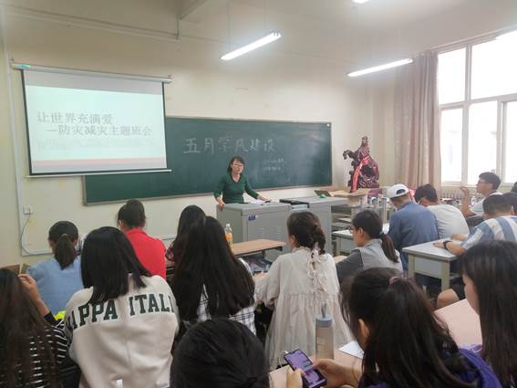 2018级辅导员张瑞红老师于2019年5月16日下午17点在工4-404开展“让世界充满爱——防灾减灾”主题活动,2018级学生参加本次活动。