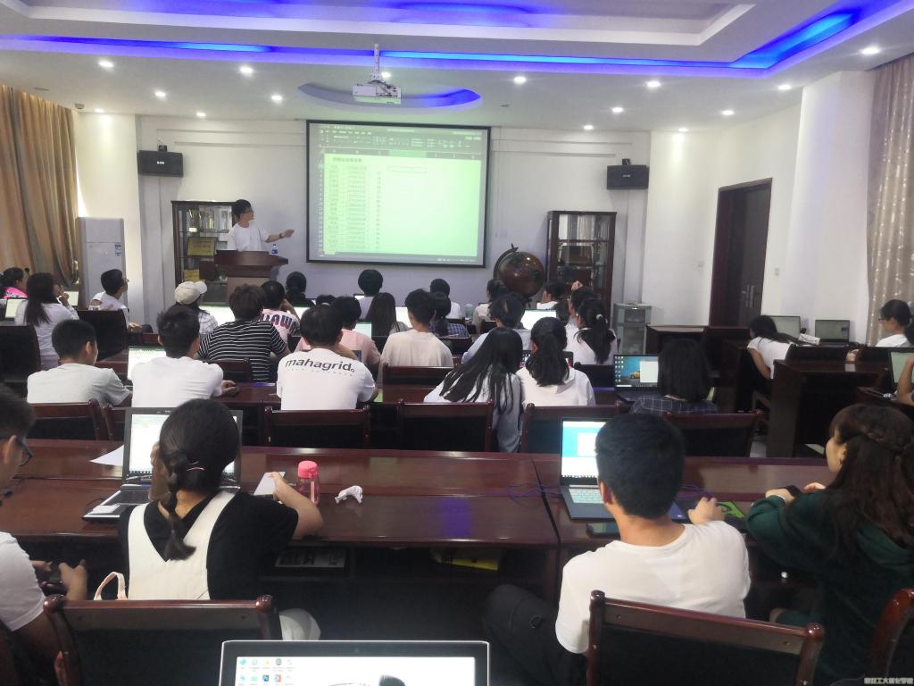 培训开始前,参与培训的全体成员有序就坐,做好准备等待会议开始。随后车枭采用PPT讲解与实际操作结合的方式进行讲解。会议中主要对Excel的函数应用进行教学,并对其中需要注意的细节展开详细的说明,对函数每个字符所代表的含义与如何输入正确的代码反复强调。一方面,在电脑上实际操作讲解,另一方面全体团学干部在自己随身携带的电脑上进行操作,有了理论支撑,也有了实际演练,大家都收获颇丰。接着,对于学习实际操作过程中所存在的疑问,学生负责人为大家一一做出详细解答。最后,车枭对本次会议进行总结,并表示希望以后有机会能举办更多诸如此类的学习交流会,以此提高本院团学干部的各项技能。