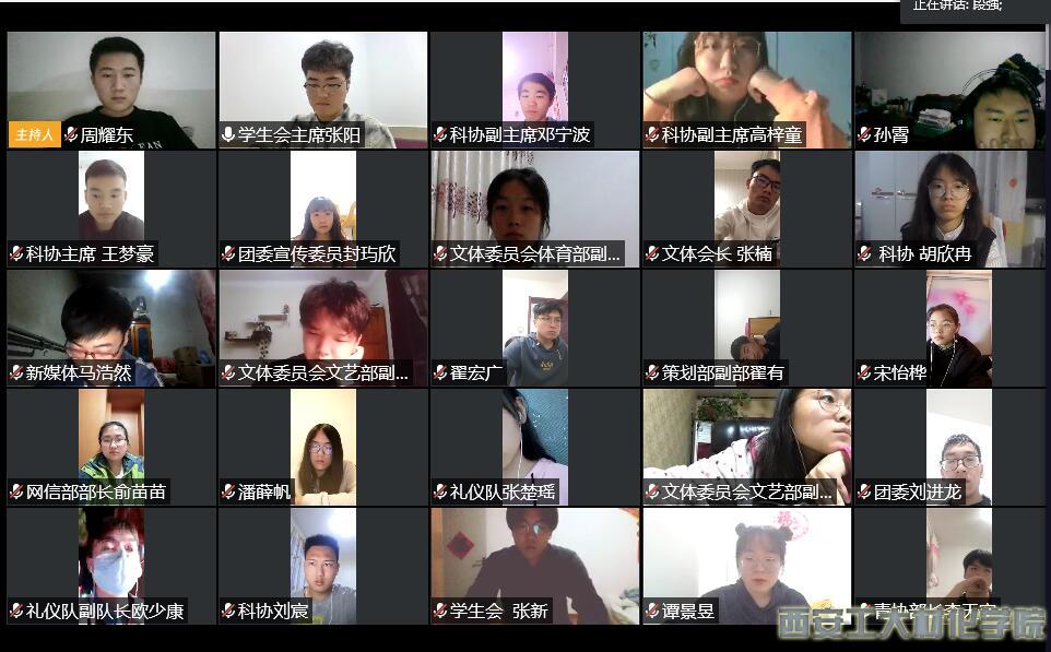20204月西安工业大学迎来了建校六十五周年,为展现青年大学生的青春才华和精神面貌,传承我校“敦德励学,知行相长”的兵工精神,138开奖网 将举办“以爱之名,献礼西工”为主题的系列活动,向西安工业大学65周年庆献礼,并于2020413日晚830通过腾讯会议召开校庆系列活动启动会议。