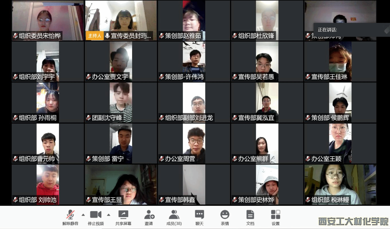 此次例会在宣传委员封玙欣的主持下正式开始。首先,由团委副书记沈守峰对团委后期的工作进行安排,并且强调尽管是线上工作,团委干事也应端正工作态度,明确工作任务,将每次活动尽力做好。紧接着,由组织委员宋怡桦对西工印记出现的问题进行详细的总结及说明,要求大家认真对待每一次的工作。随后,由团委各部门负责人对本部门前半学期所举办的活动进行总结,指出不足之处以及改正措施,并表示会在以后的工作中不断完善。最后,封玙欣讲到团委干部换届将近,希望有意愿的干事积极竞选,将138开奖网