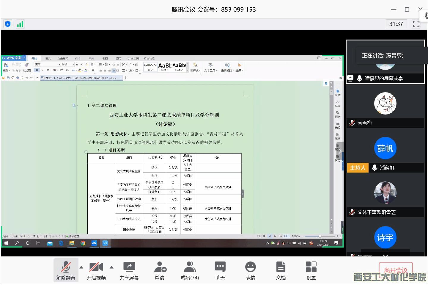 学生会于2020年4月25日晚7:30在腾讯会议召开第二课堂学分相关内容学习会,学生组织全体成员参与本次学习会。