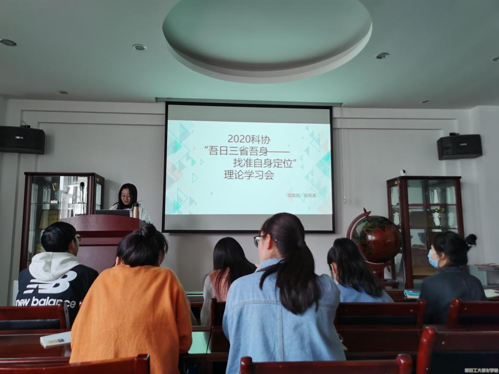 科学与技术协会于2020年10月18日10:30在工三-404召开“吾日三省吾身——找准自身定位”理论学习会,科学技术协会全体成员参加此次学习会。