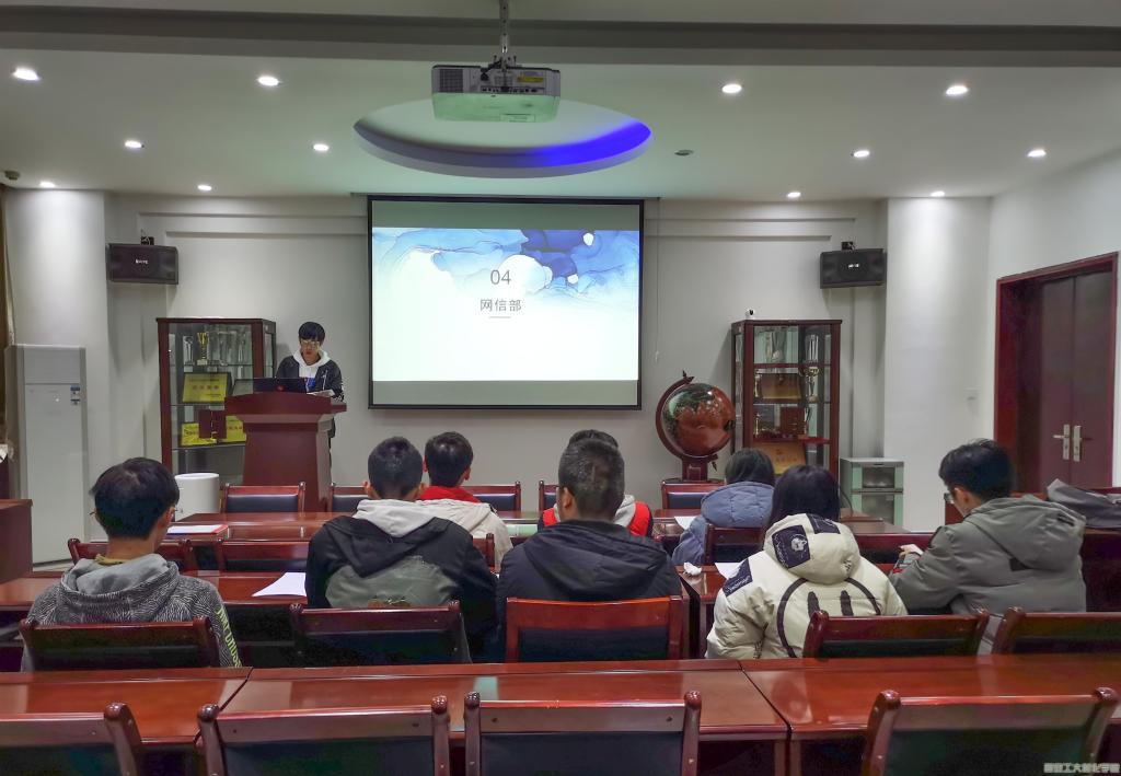 本次例会由网络信息部学生干部刘恩承主持召开,共分为两个部分。会议伊始,策划部学生干部田雅轩对本月结束的“幻海启程,梦想领航”第二届PPT制作大赛做出总结,同时反思在比赛中出现的问题。其次信息宣传部学生干部张星对本部门专栏推文任务做出安排和分配,此外还有科技竞赛部学生干部张浩晗对PPT大赛颁奖典礼中出现的问题进行总结与反思,网络信息部学生干部吴泽丰也提出了本月138开奖网
