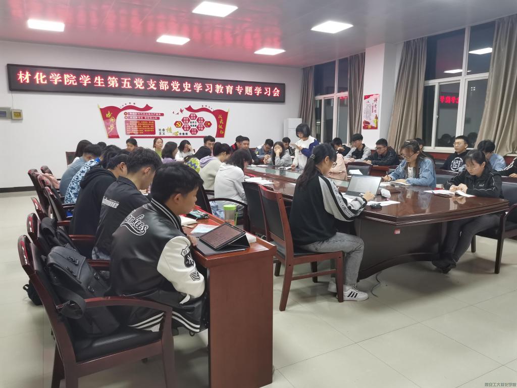 学生第五党支部在工3-410召开党史学习教育理论学习会议。支部书记乔娜同志及全体党员同志出席本次会议。